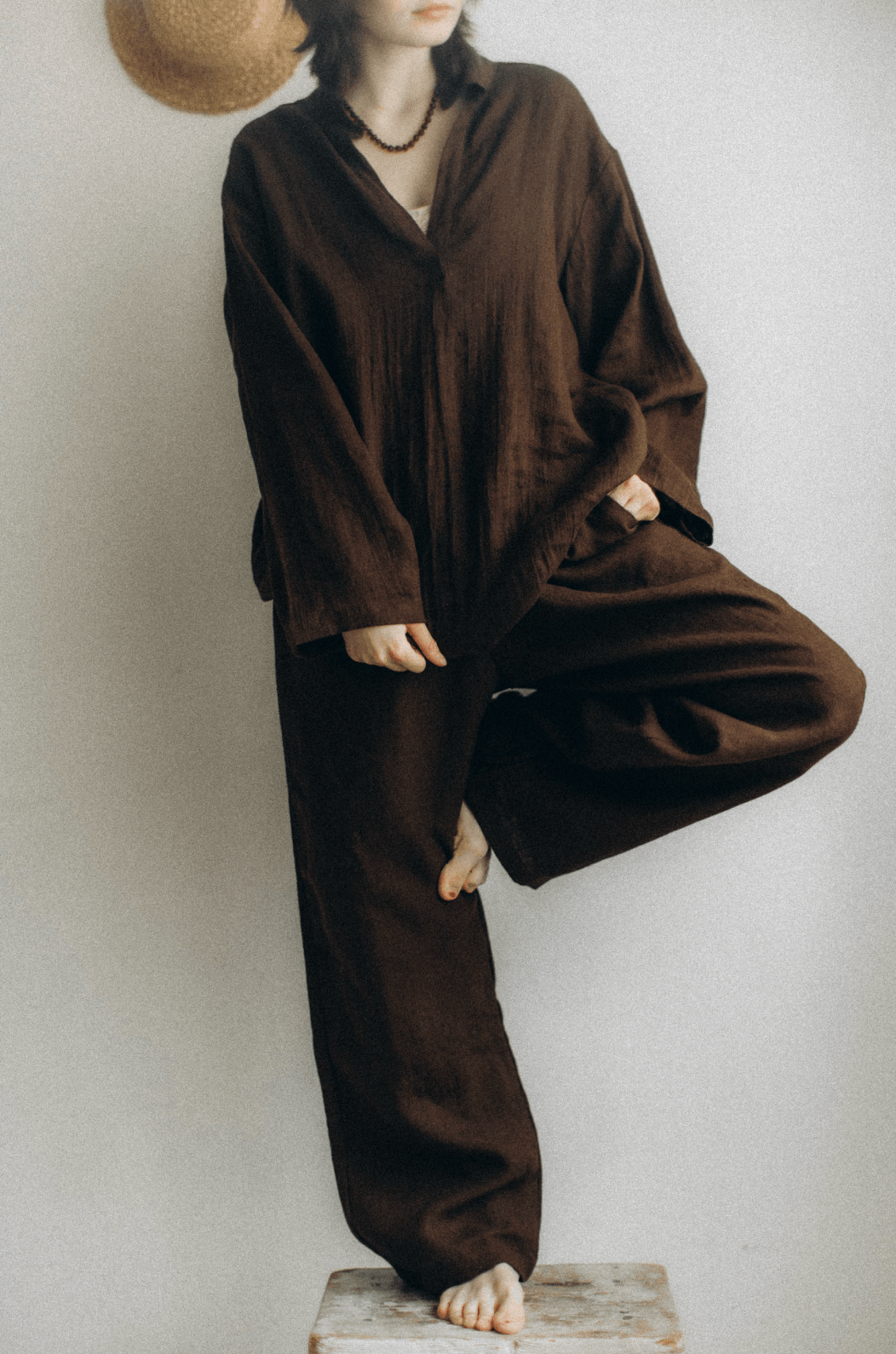 Len & Spolka hand-dyes linen in small batches using natural plant dyes, so every garment develops its own shade and pattern. Expect subtle variations - this is the beauty of true craft.