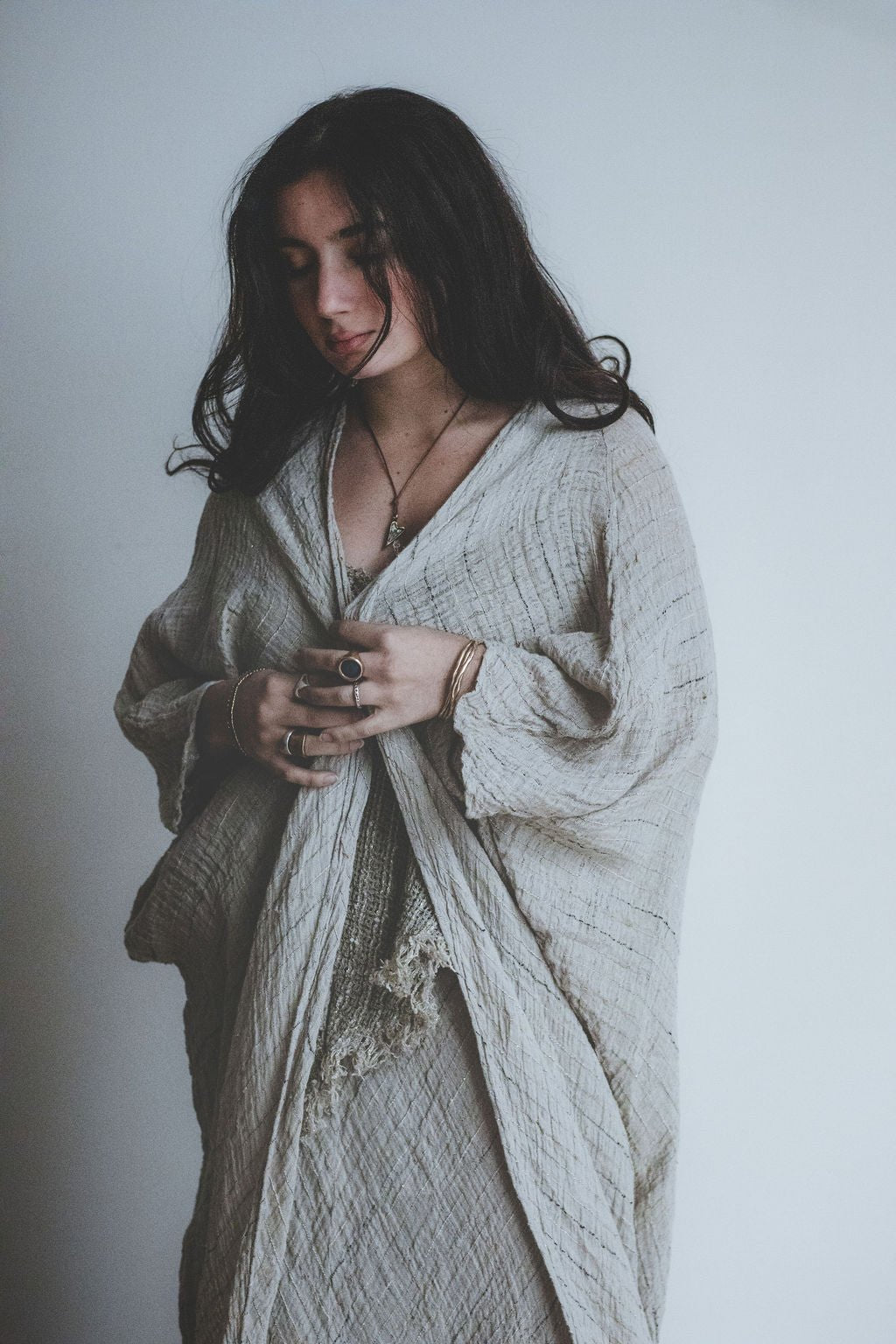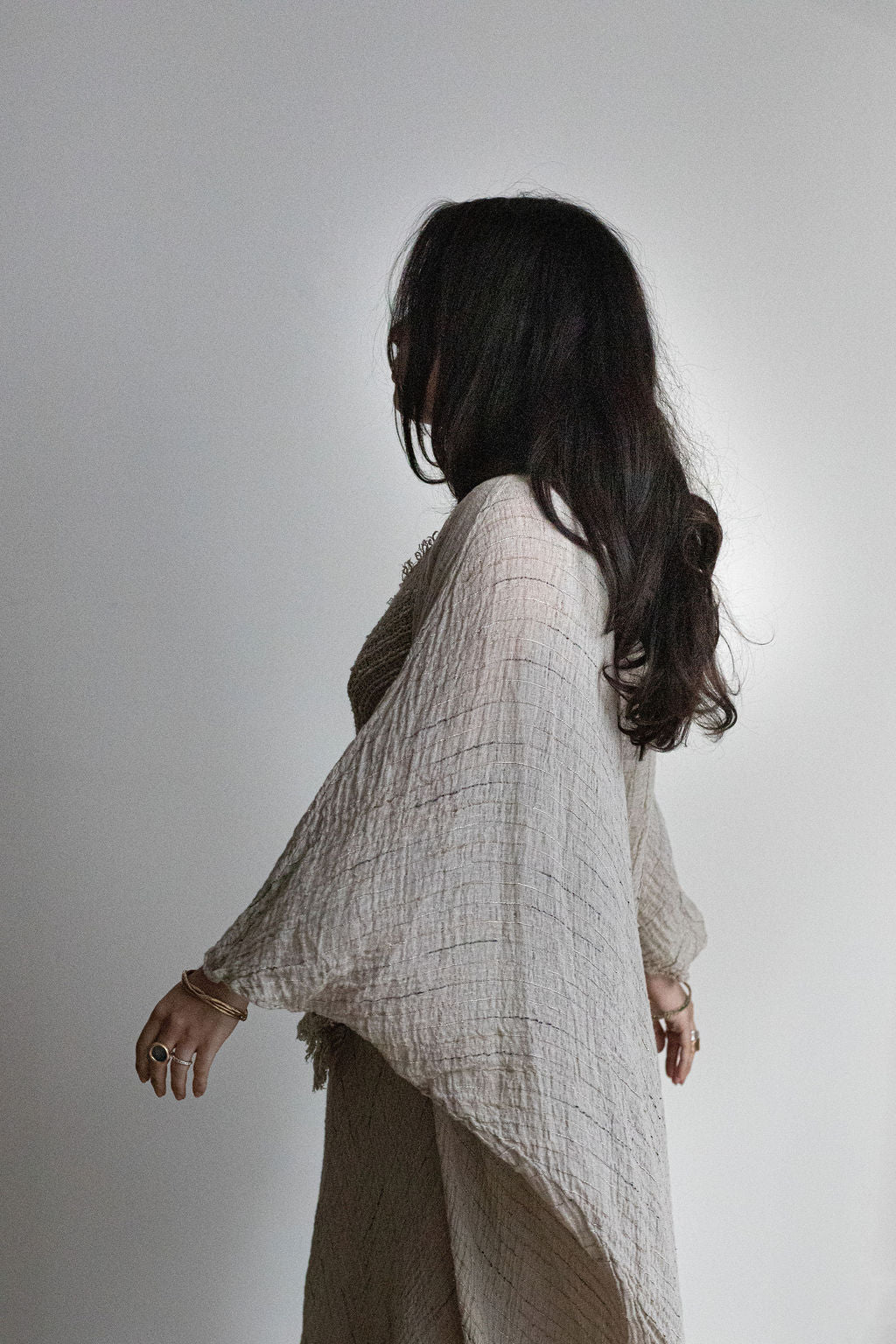 The Spolverino Holiday in Garza Egitto is a light and effortless duster jacket, perfect for layering over Brunella’s flowing linen silhouettes. Designed with an airy, open weave, it offers a relaxed drape and timeless elegance, making it an ideal travel companion or everyday staple.