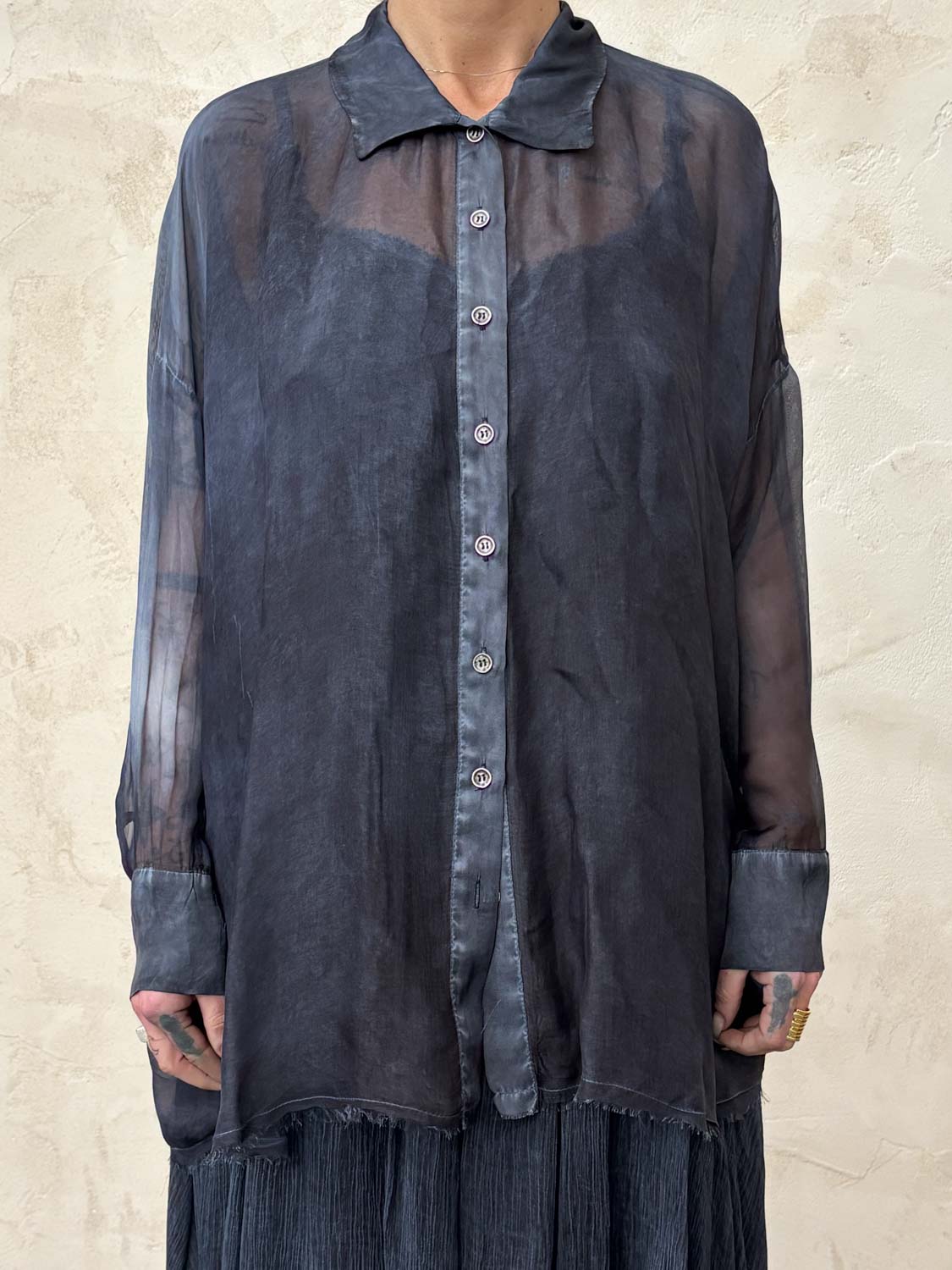 Light, fluid and beautifully uncomplicated, the Sanctamuerte S193 Boxy Flow Shirt is an effortless layering piece with a soft, romantic attitude. Its sheer, airy texture gives it movement and ease, while the gently rounded collar and relaxed, boxy silhouette keep the look grounded and modern. This is one of those pieces that instantly elevates a simple outfit, quietly dramatic, yet wearable every day.