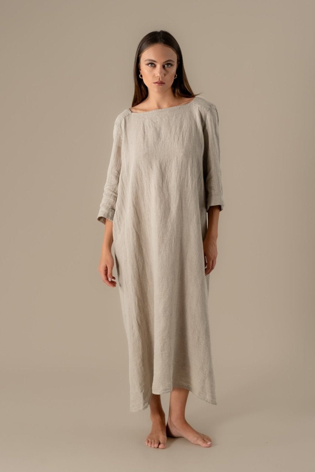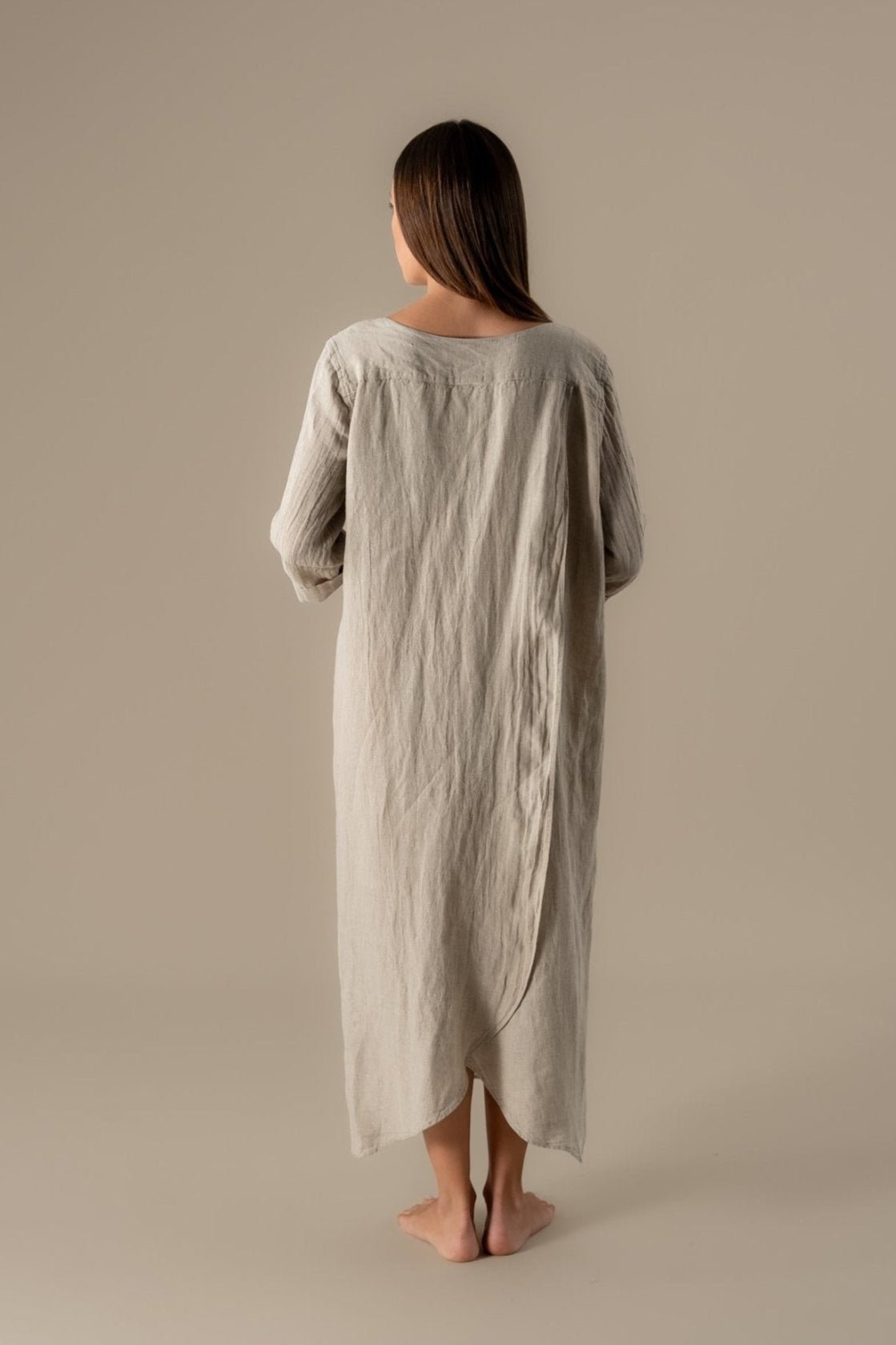 The Vestito Giza in Battista is a timeless linen dress with understated elegance. Its minimalist silhouette, soft scoop neckline, and 3/4 sleeves make it an effortless piece for both casual days and more refined occasions. Crafted with Brunella’s signature weave, it offers a natural drape and breathable comfort.