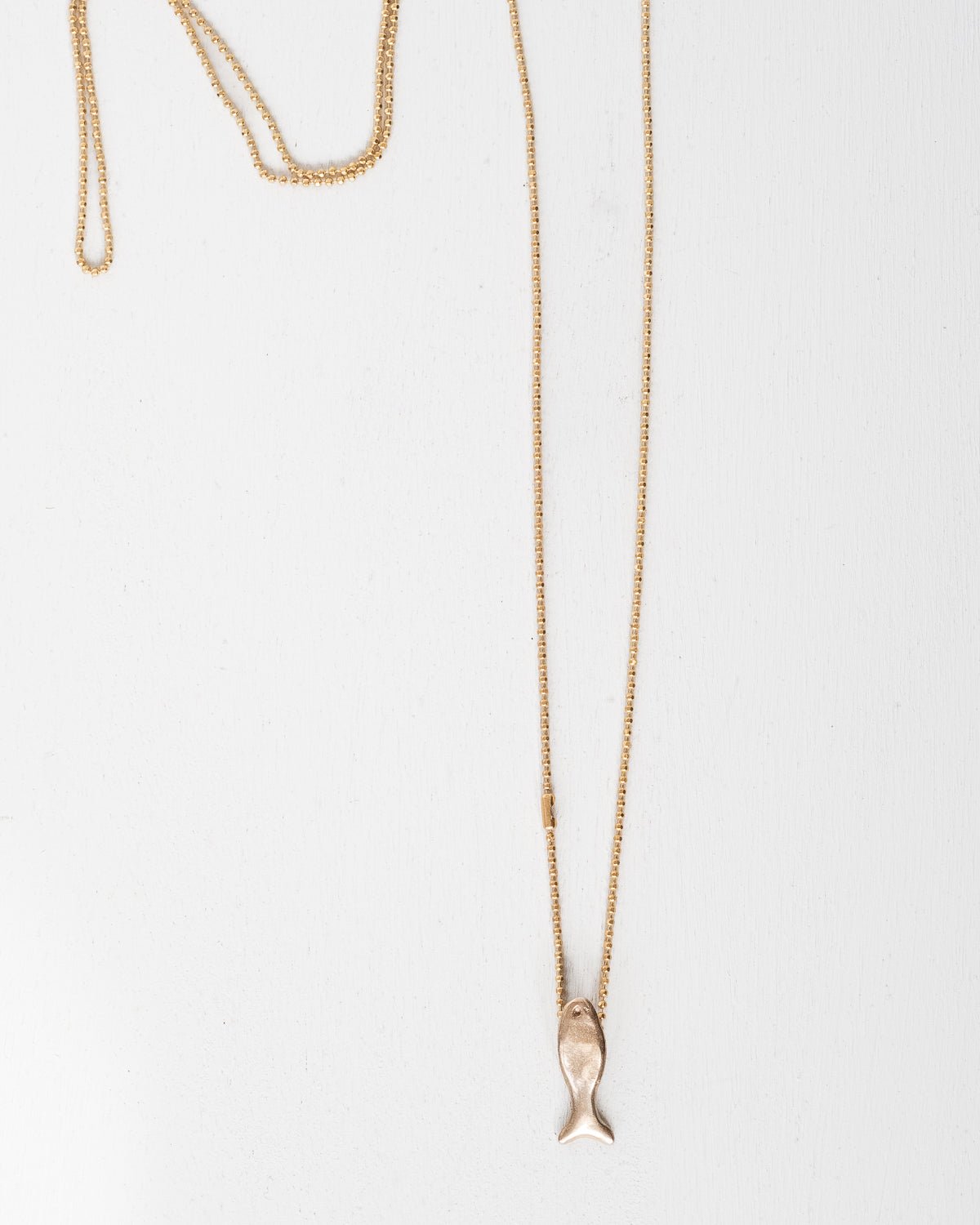 Deléitese con el sofisticado y exquisito colgante de cadena Piccolino, elaborado en Florencia por Pesci Che Volano. Suspendido de una cadena de latón (chapado en oro, sin níquel), este collar irradia elegancia italiana.