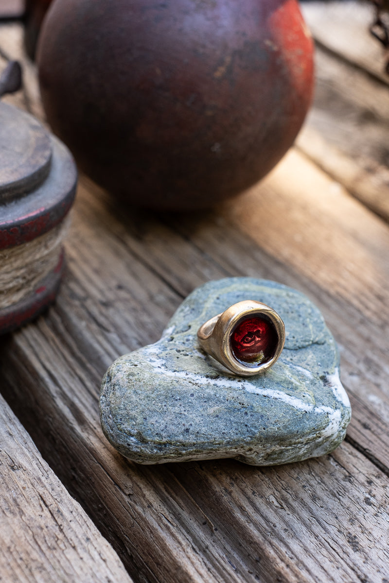 Brilla con el anillo Sole de La Casa by Importante. Este anillo redondo y brillante Pesci Che Volano aporta un toque rústico y alegre a tu colección.