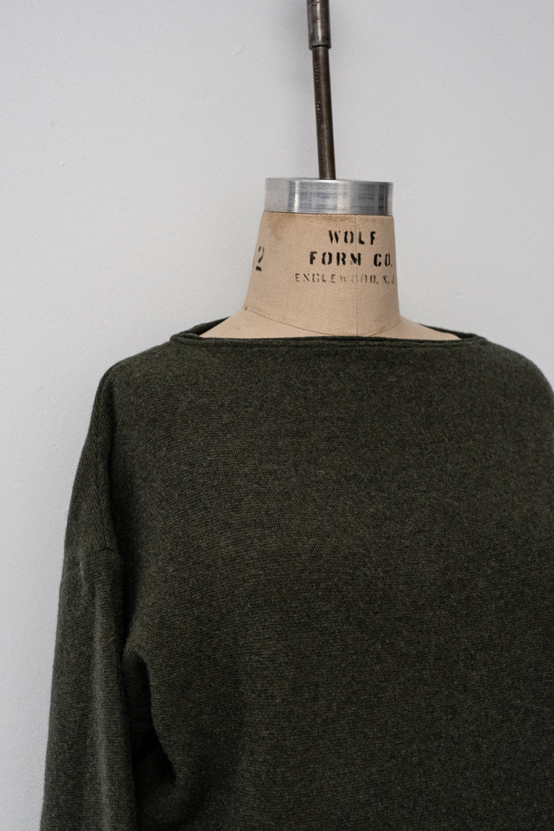 Design details: Boat neckline, dropped shoulders, long sleeves, straight hem