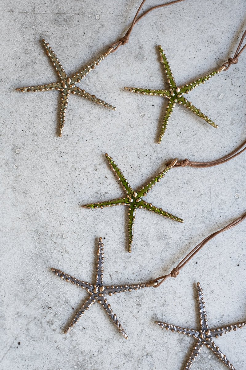 The STELLA DI MARE L PENDANT is a striking homage to the beauty of the sea. Handcrafted in Florence, this large bronze starfish pendant is accented with subtle green patina, evoking the textures and colours of the ocean floor.